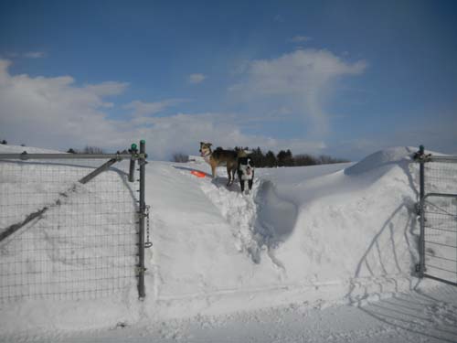 フェンスと同じ高さまで積もった雪